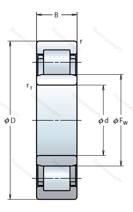 Роликовый цилиндрический подшипник NU 2212 W