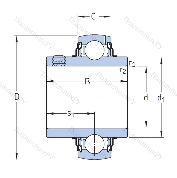 Радиальное шариковое однорядное тело, размещающееся в чугунном корпусе с парой усиливающих колец и внутренней шиной увеличенной ширины. Наружная обойма – сферической либо цилиндрической формы. Для гашения вибраций и шумности может устанавливаться наружное резиновое демпфирующее усиление.
